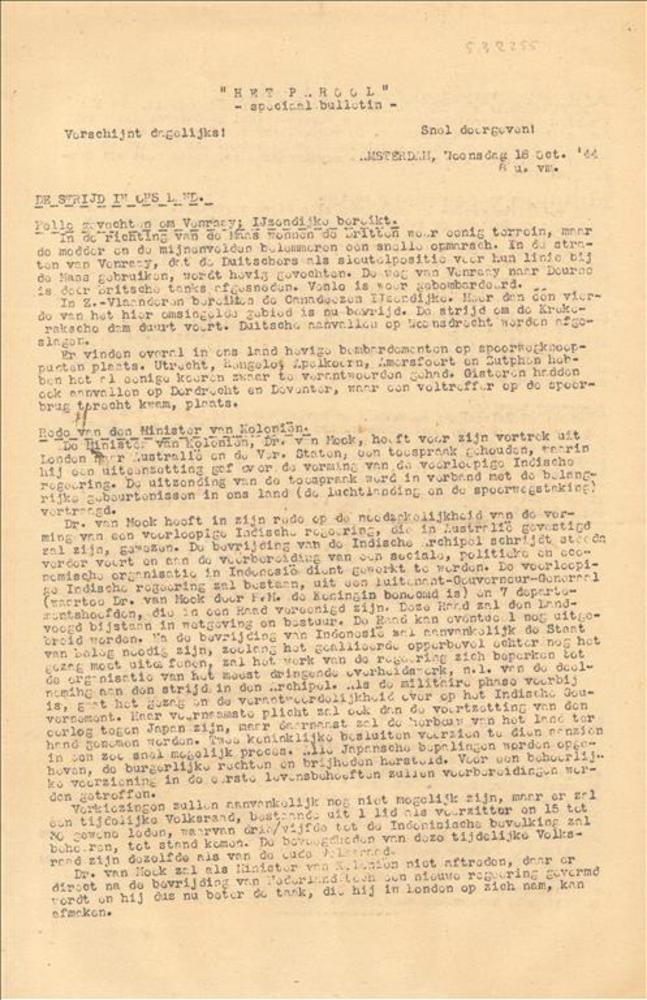 Nieuwsbulletin uitgegeven door Vrij Nederland op den...