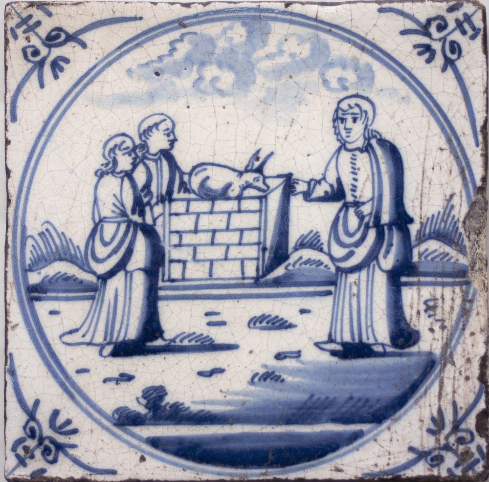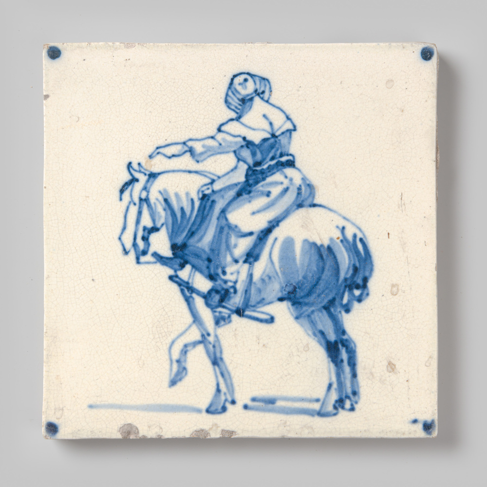 tegel van aardewerk in onderglazuur, voorstellende: ...