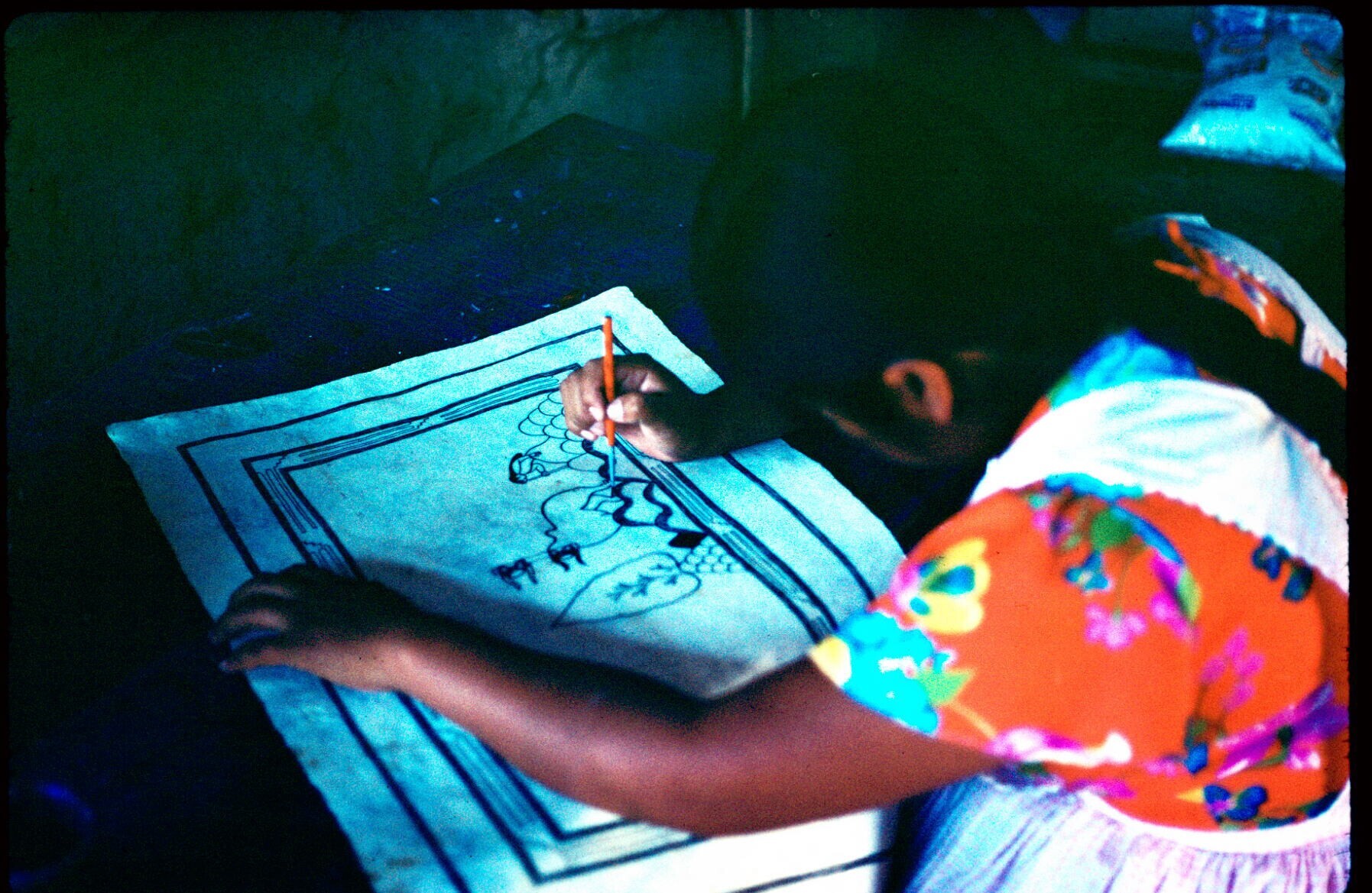 amateschilderes Margarita Pedro A. aan het werk aan ...