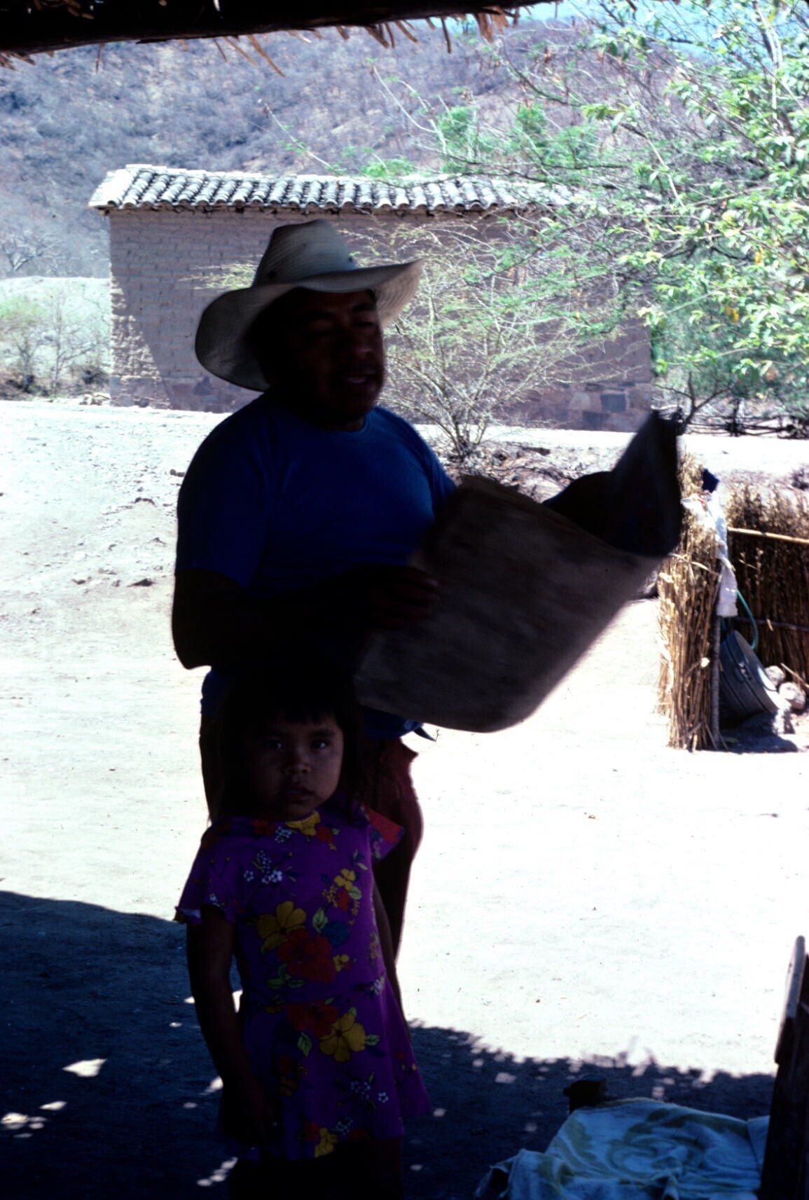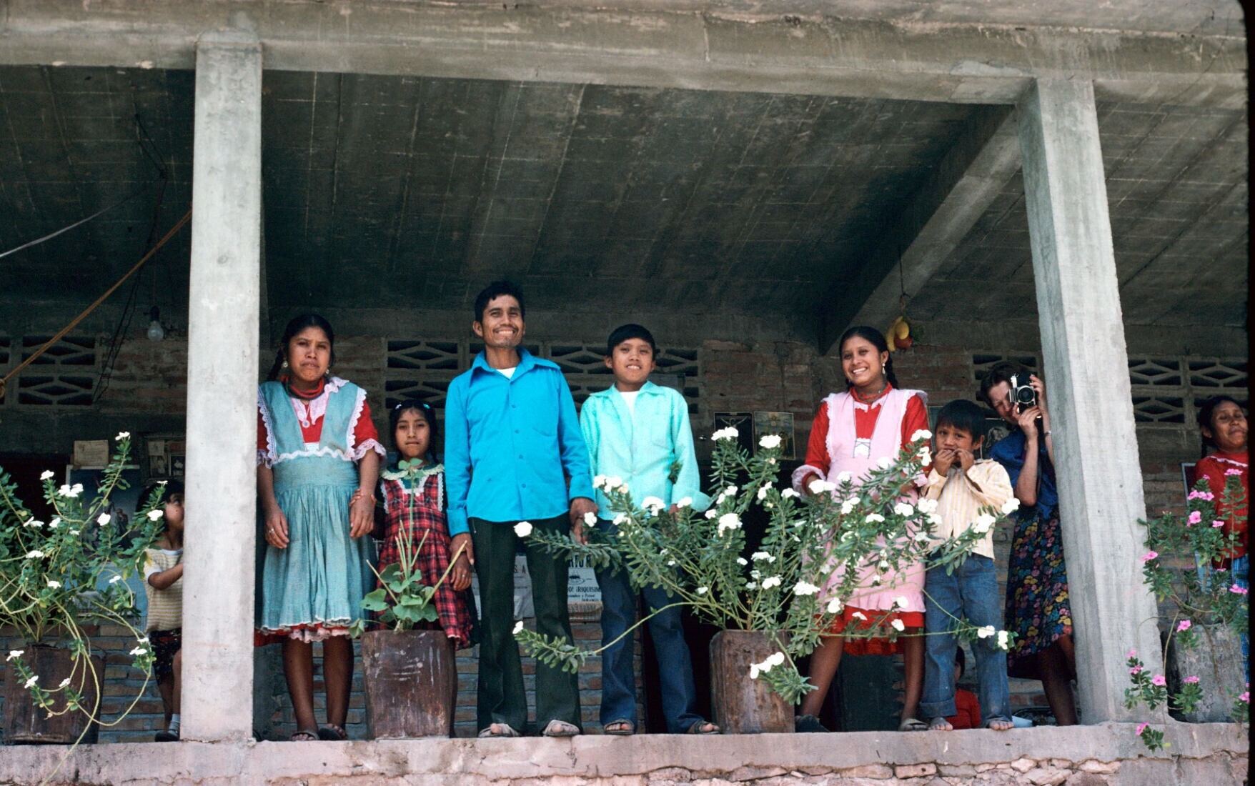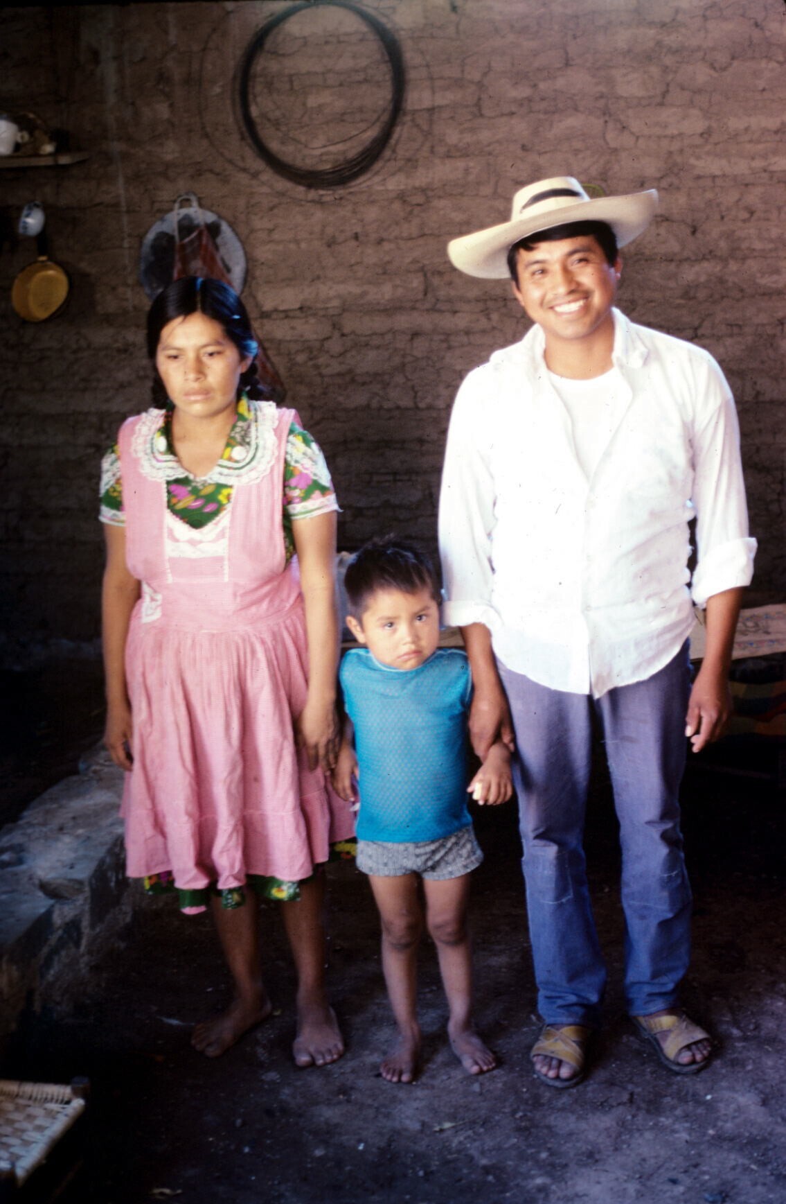 Angel Juárez met verwanten bij huis