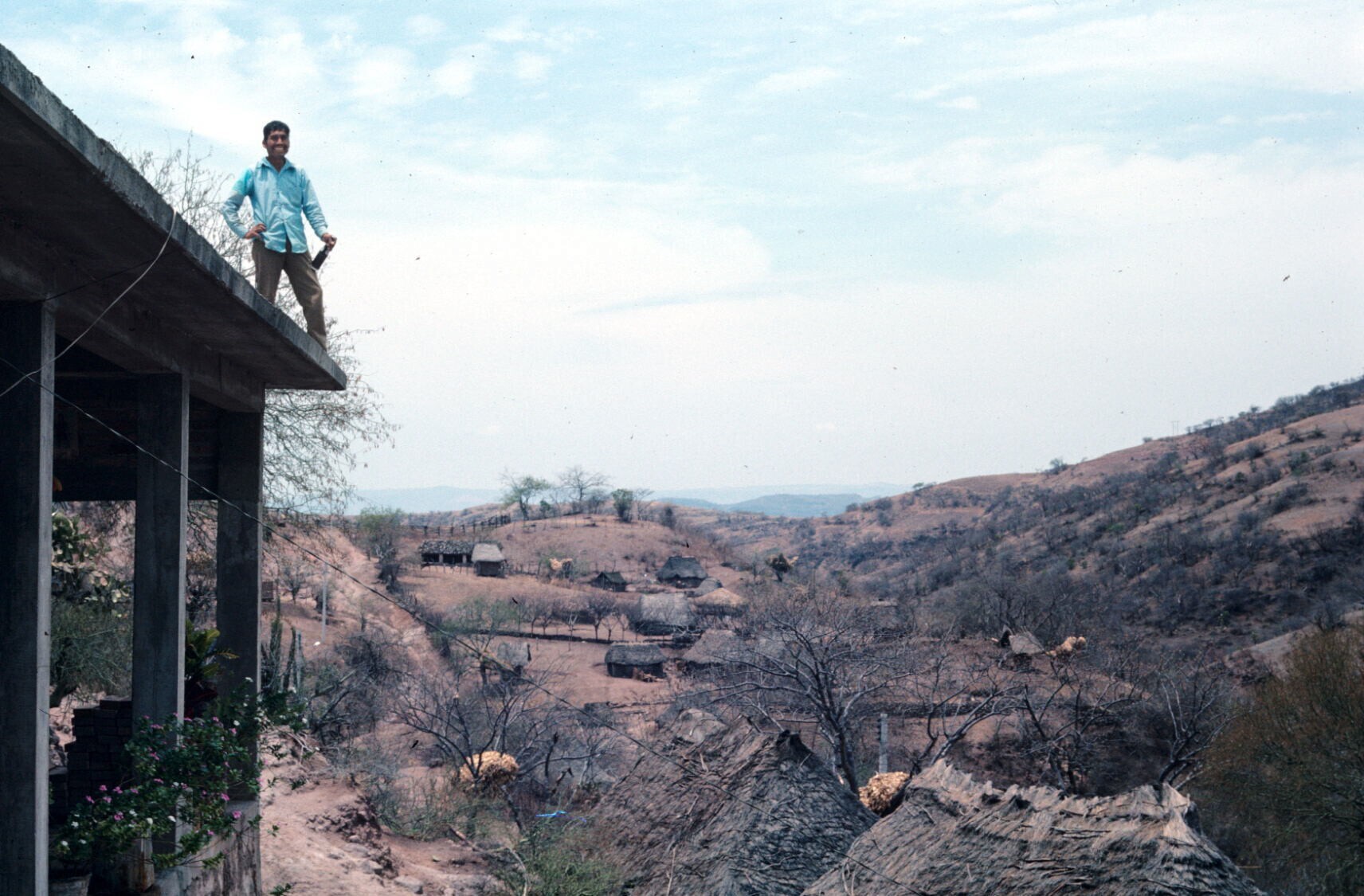 (voormalig amate-schilder) Angel Juárez op dak van z...