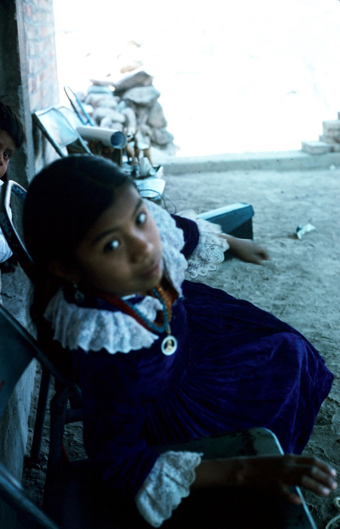 meisje in paarse jurk met kant (uit familie van (voo...