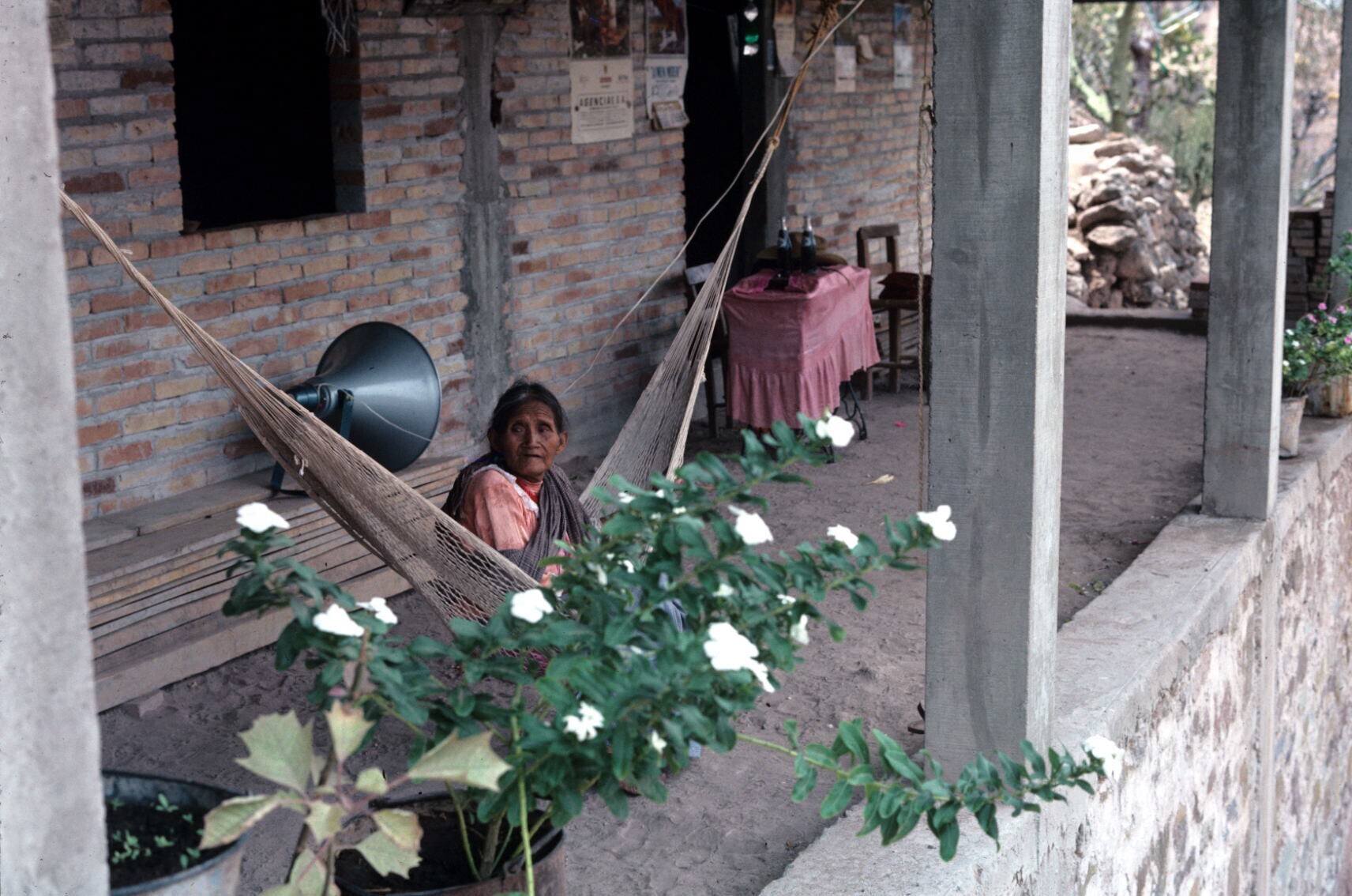 vrouw op erf
