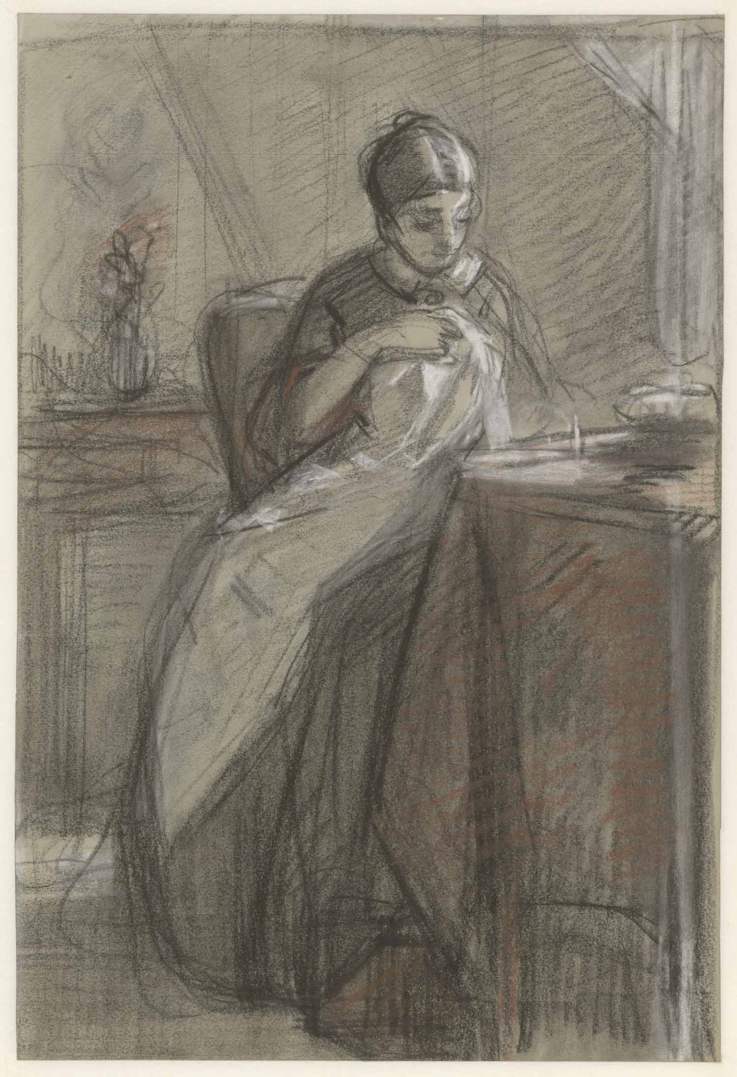 Vrouw met handwerk. Man met baard (verso)