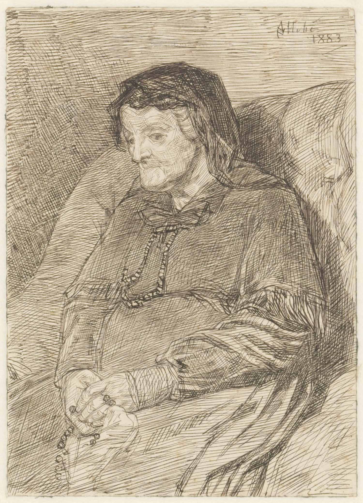 Oude vrouw met rozenkrans