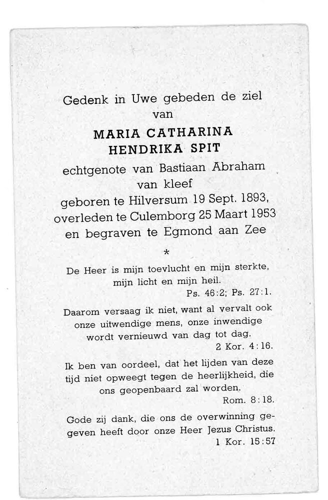 bidprent voor Maria Catharina Hendrika Spit. Geboren...