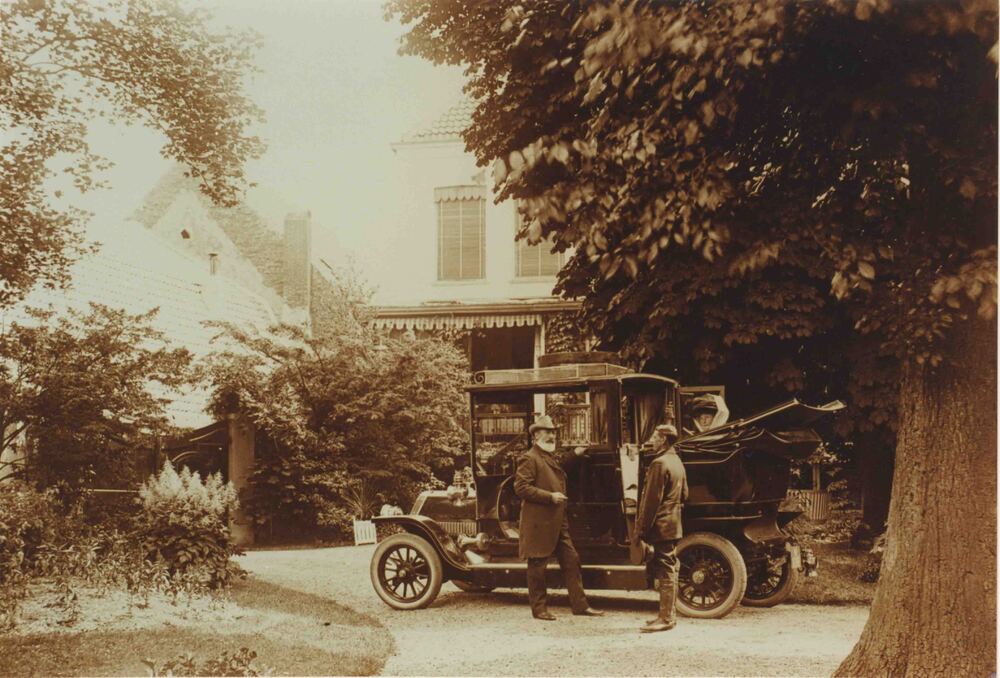 Foto, voorstellende dhr. Dresselhuijs met auto, Cule...