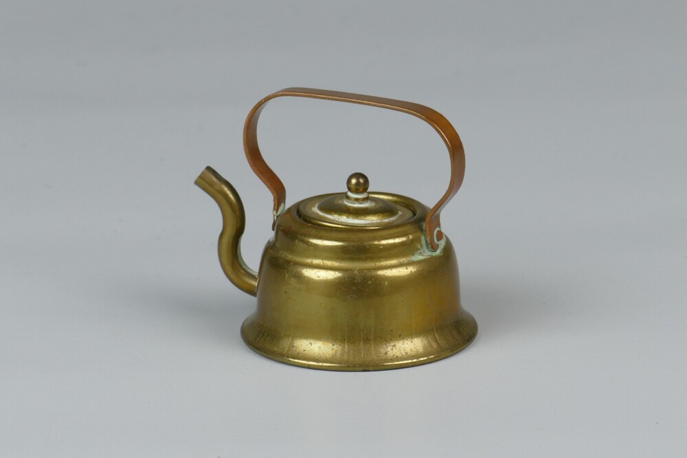 Miniatuur waterketel van messing met deksel en rood ...