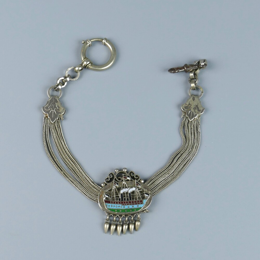 horlogeketting van zilver, met een emaille scheepje