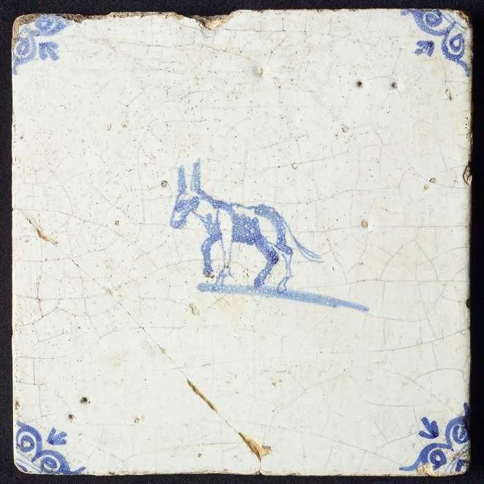 Dierentegel, lopende ezel, hoekmotief ossenkop