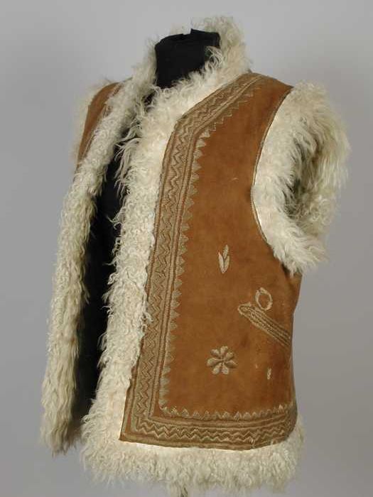 Mouwloze Afghaanse hes, bruin suède met borduursels,...