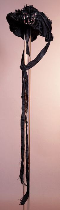 Capothoedje van gedrapeerd zwart satijn en raffia, l...