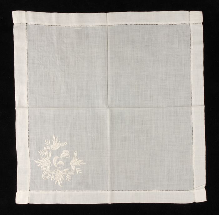 Vierkante crèmekleurige batisten zakdoek met in de h...