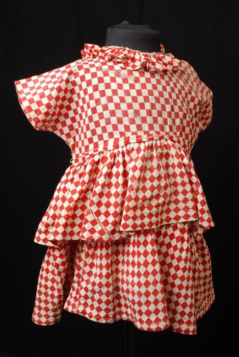 Rode korte meisjesjurk met halfronde applicatie bij ...