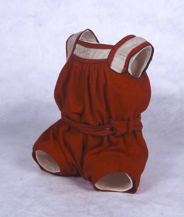 Mouwloze hansop van rood katoen met vaste ceintuur m...
