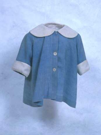 Kinderjas of kinderjurk van blauw katoen, gerend mod...