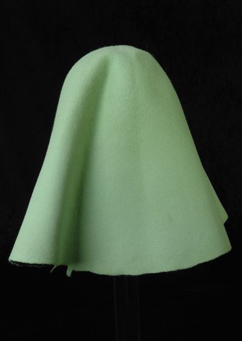 Cloche van lichtgroen geschoren vilt, halffabrikaat