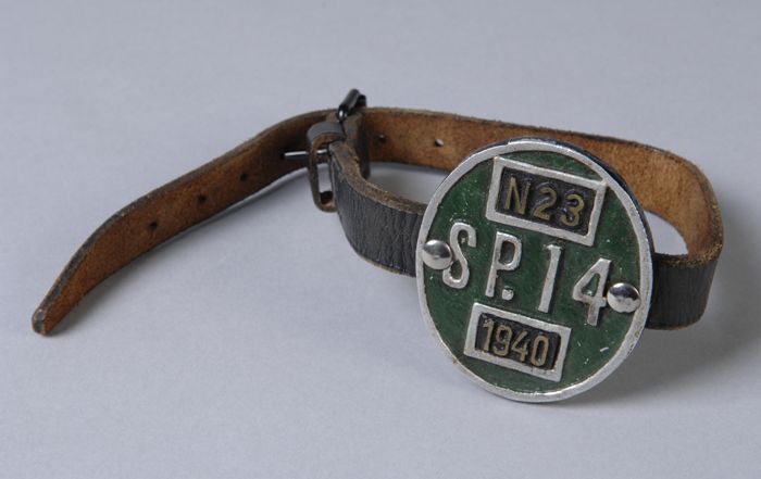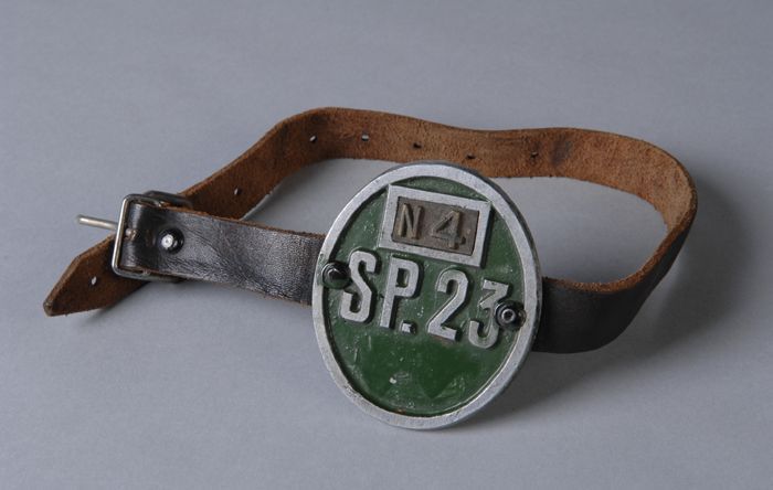 Armschild van de brandweer met "N 23 / SP.14 / 1940"