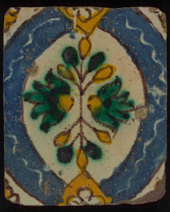 Ornamentegel, floraal motief binnen ovale band, hoek...