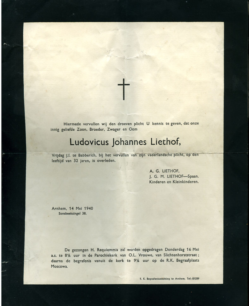 Rouwbrief 'Overlijdingsbrief’ met enveloppe van Ludo...