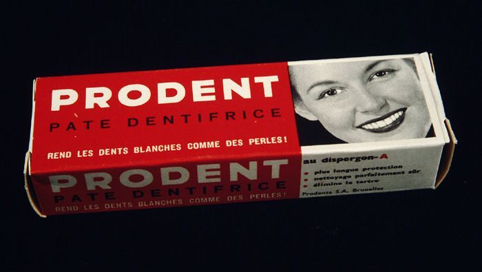 Rood-witte tube tandpasta in originele kartonnen ver...