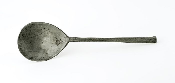 Deel van koperen processiekruis met gegraveerde Chri...
