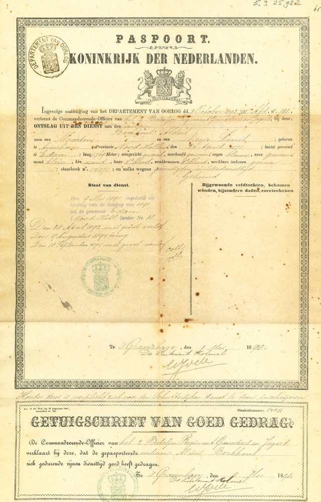 Paspoort wegens uit dienst en bewijs van goed gedrag