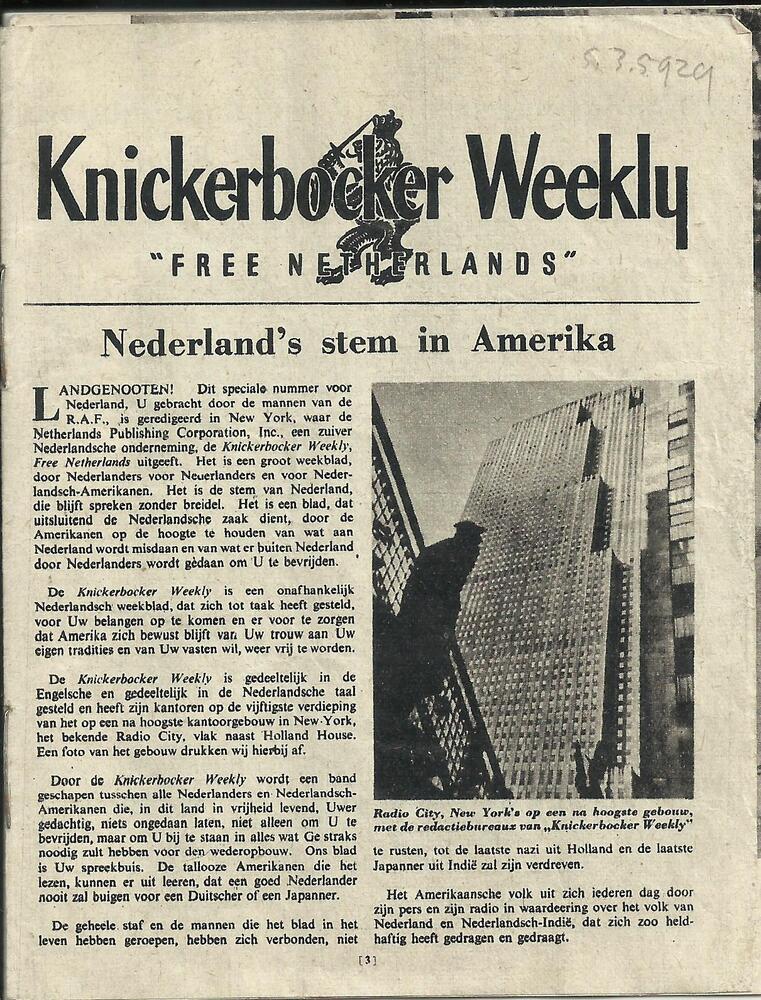 Pamflet: "Knickerbocker weekly "Free Netherlands" (H...