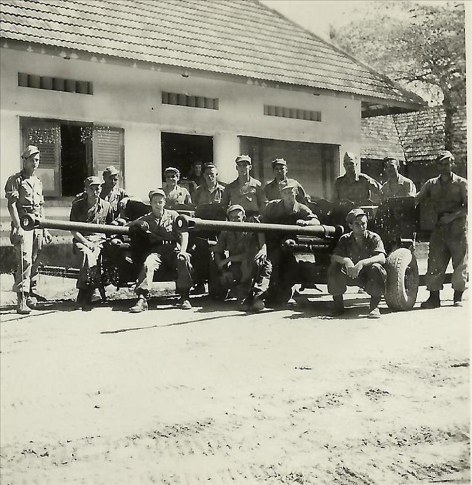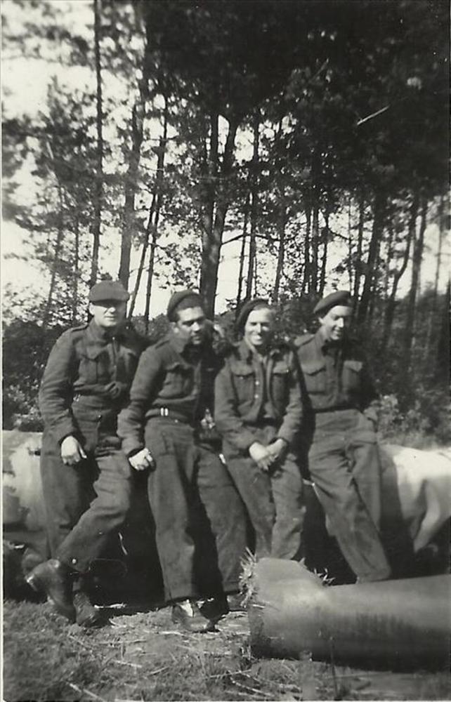 8 Canadese miltairen met buitgemaakt hakenkruisvlag