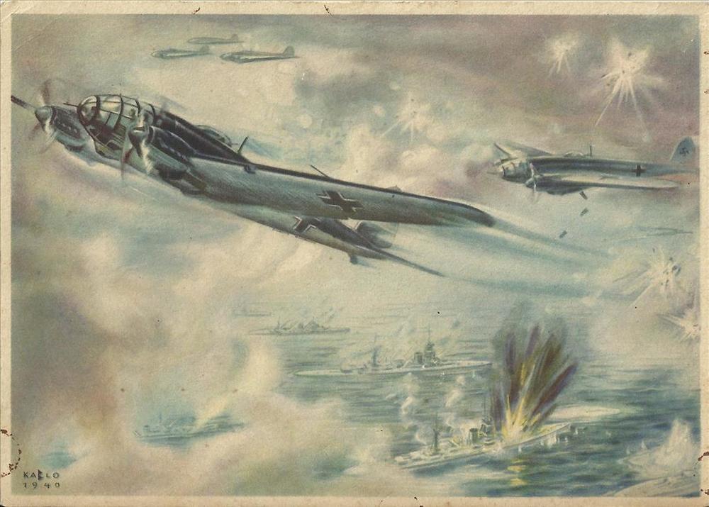 Ansichtkaart zeeslag bij Scapa Flow 16 maart 1940