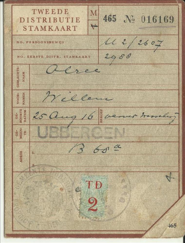 Tweede Distributiestamkaart van Wilhelmina Olree
