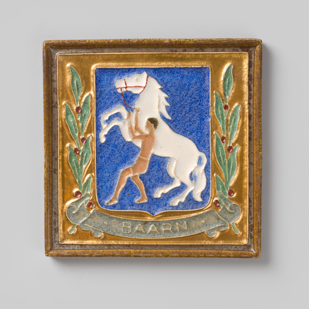 tegeltableau van keramiek met tinglazuur, voorstelle...