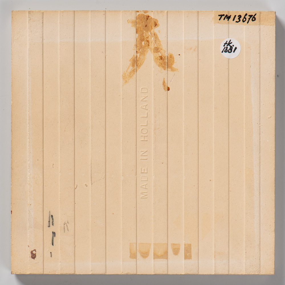 tegel van aardewerk met tinglazuur, voorstellende: h...