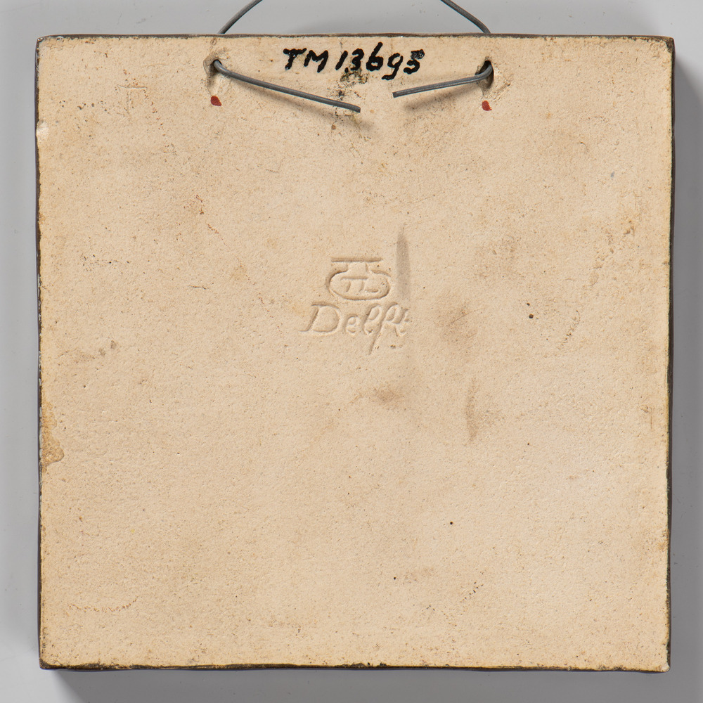 Tegel van aardewerk met tinglazuur, voorstellende he...