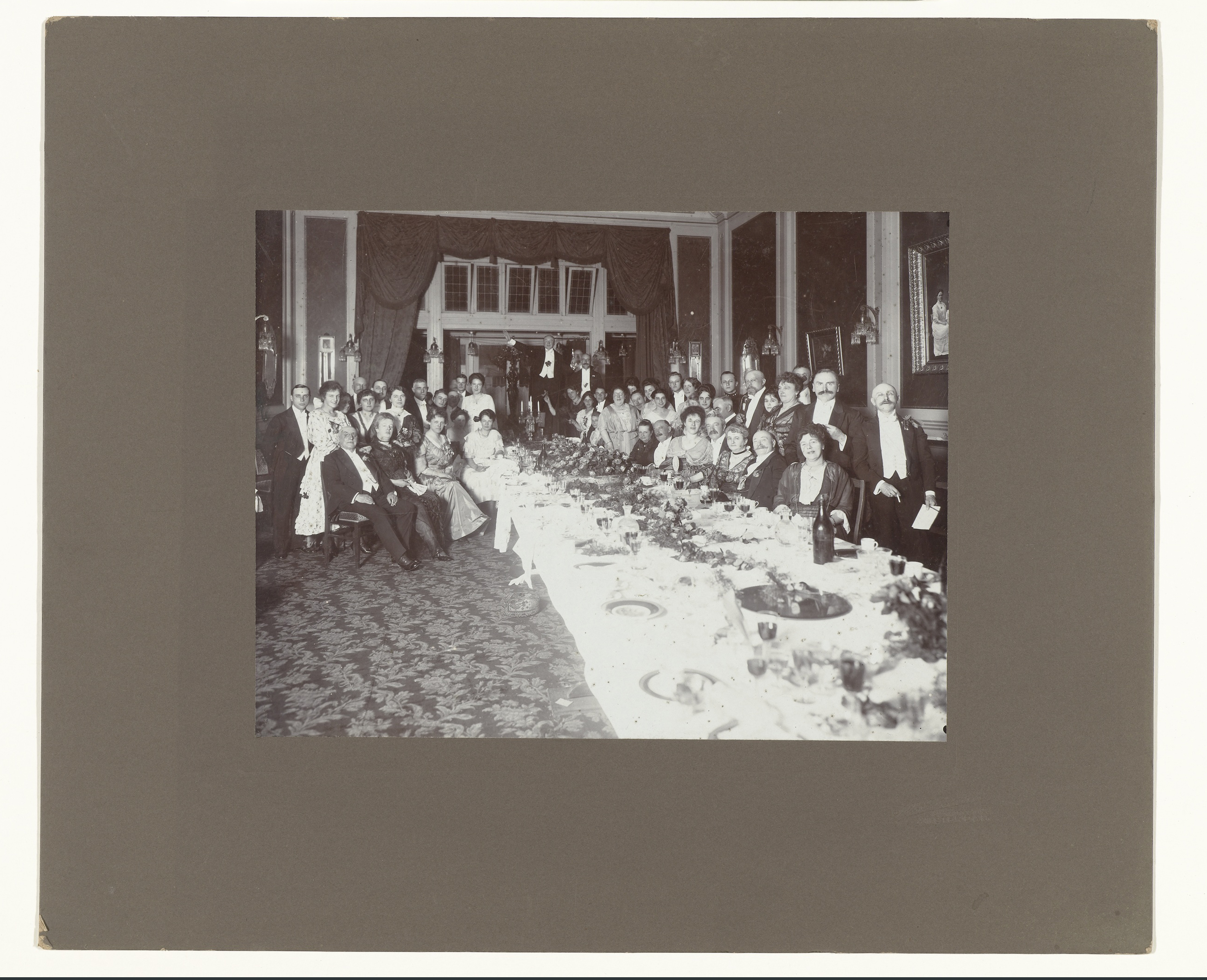 Groepsportret tijdens een diner met o.a. Simon Maris...