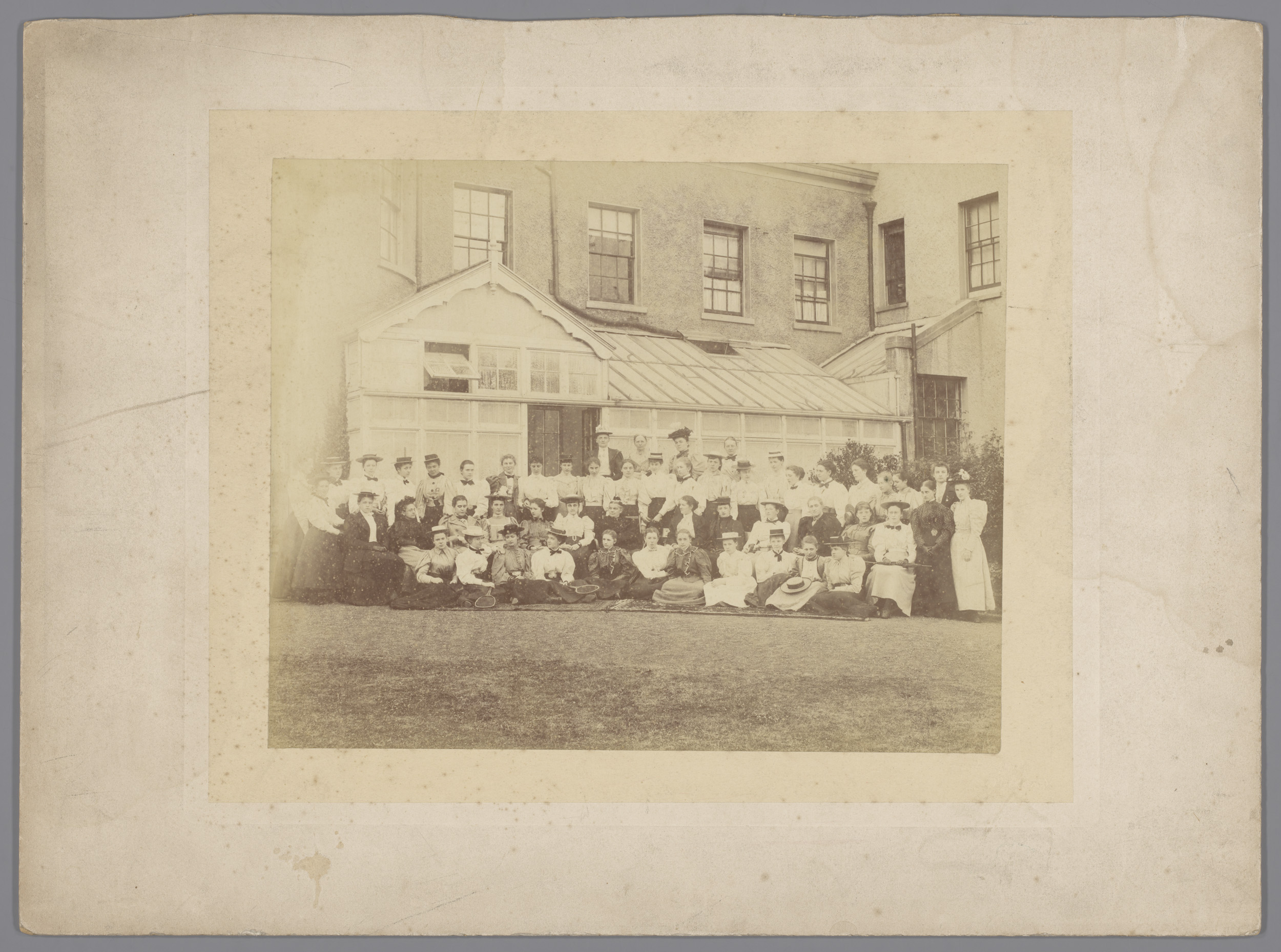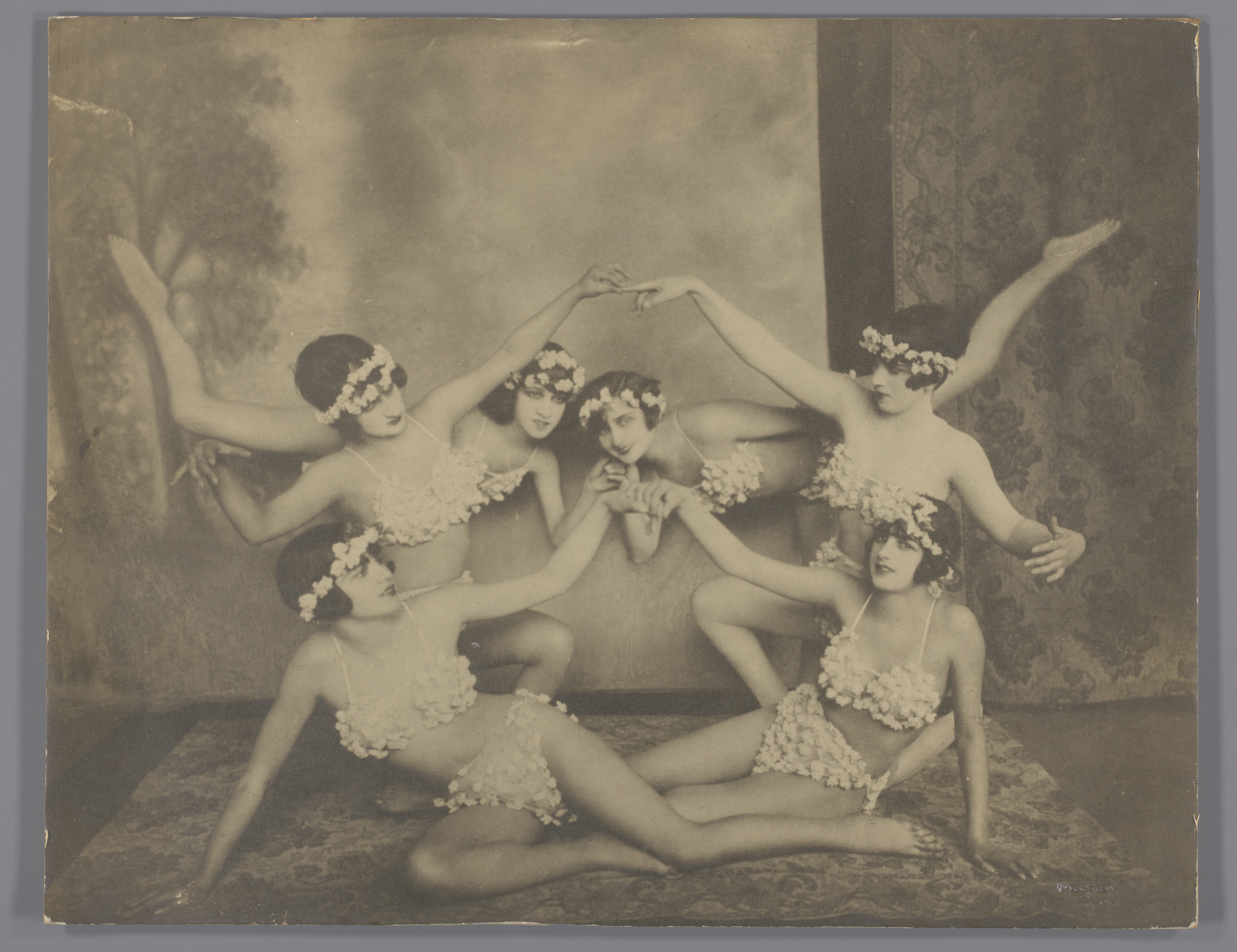 Groepsportret van onbekende meisjes, enkele hebben e...