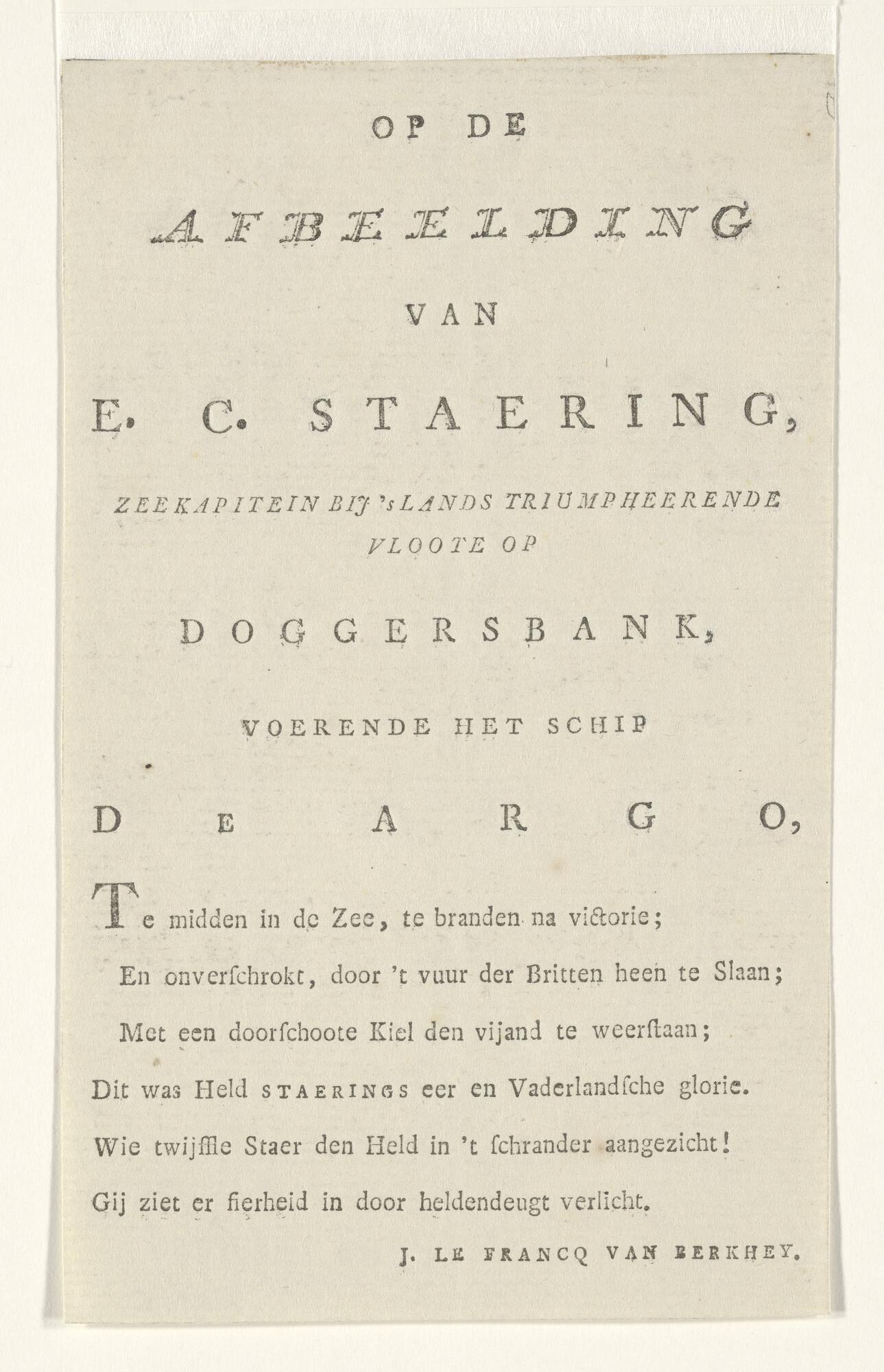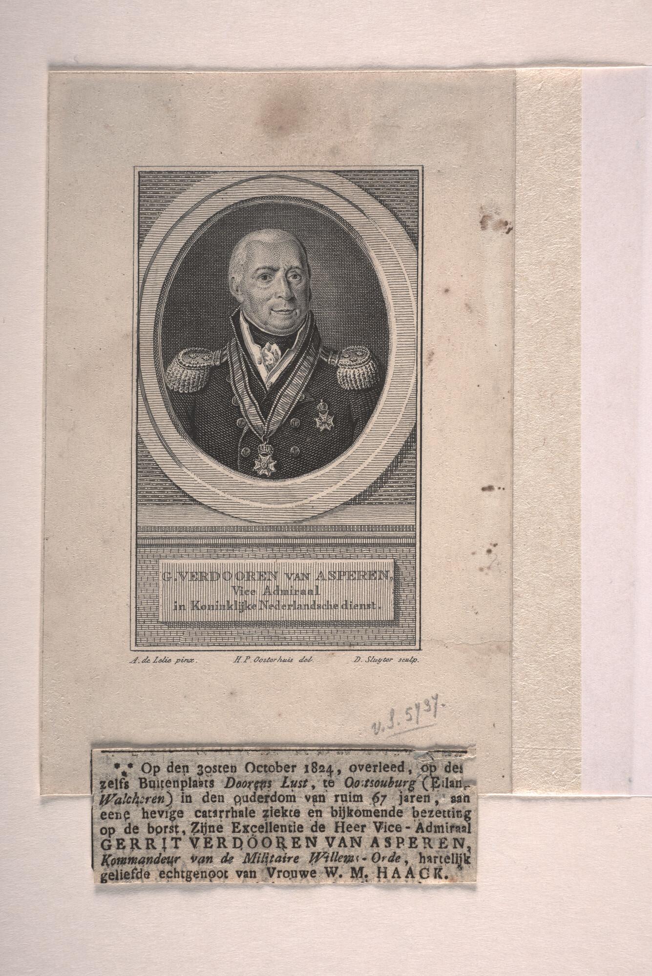 Tekst behorende bij de beeltenis van vice-admiraal J...