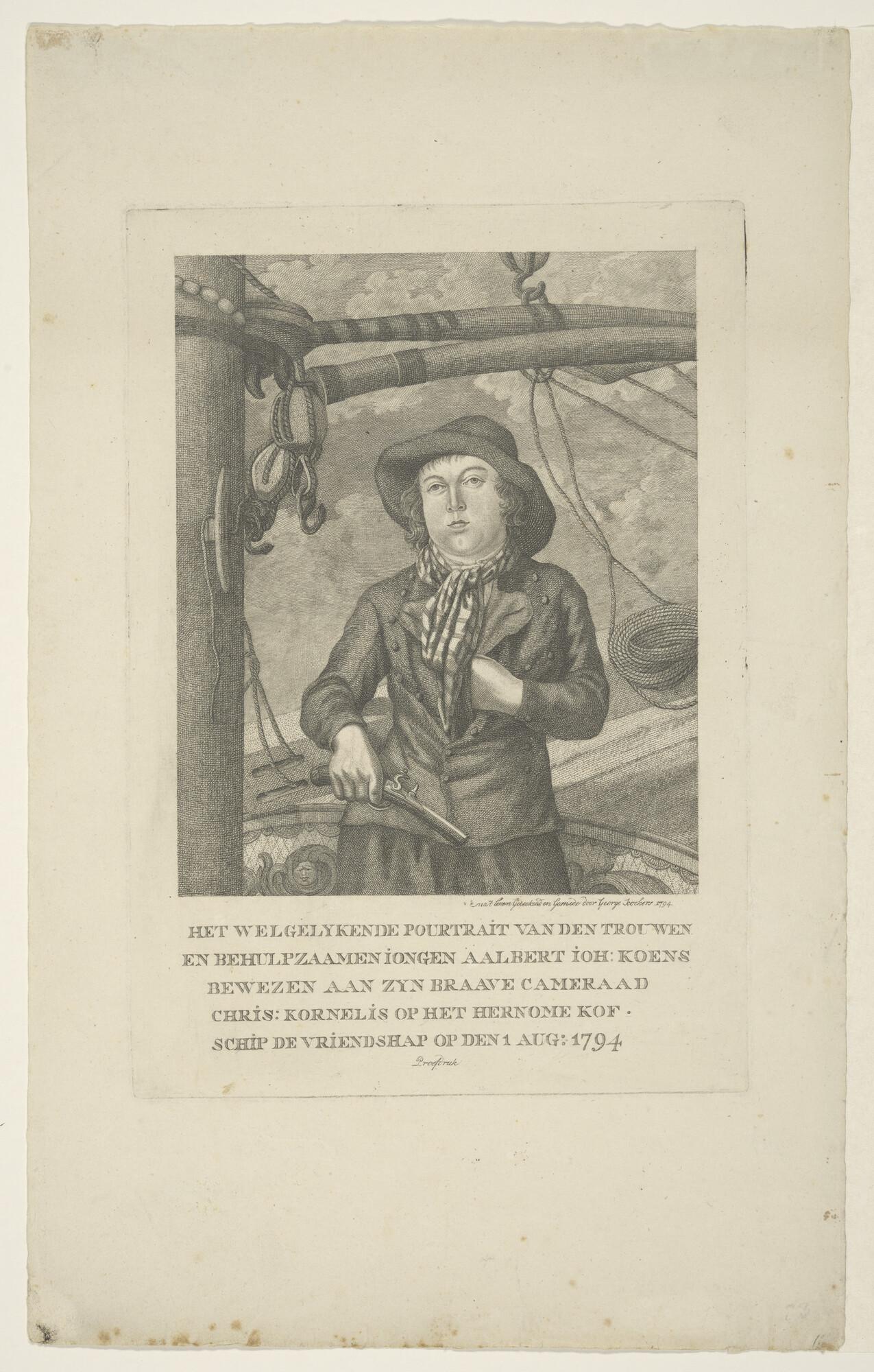 Portret van stuurman Wierd Adels op het kofschip 'De...