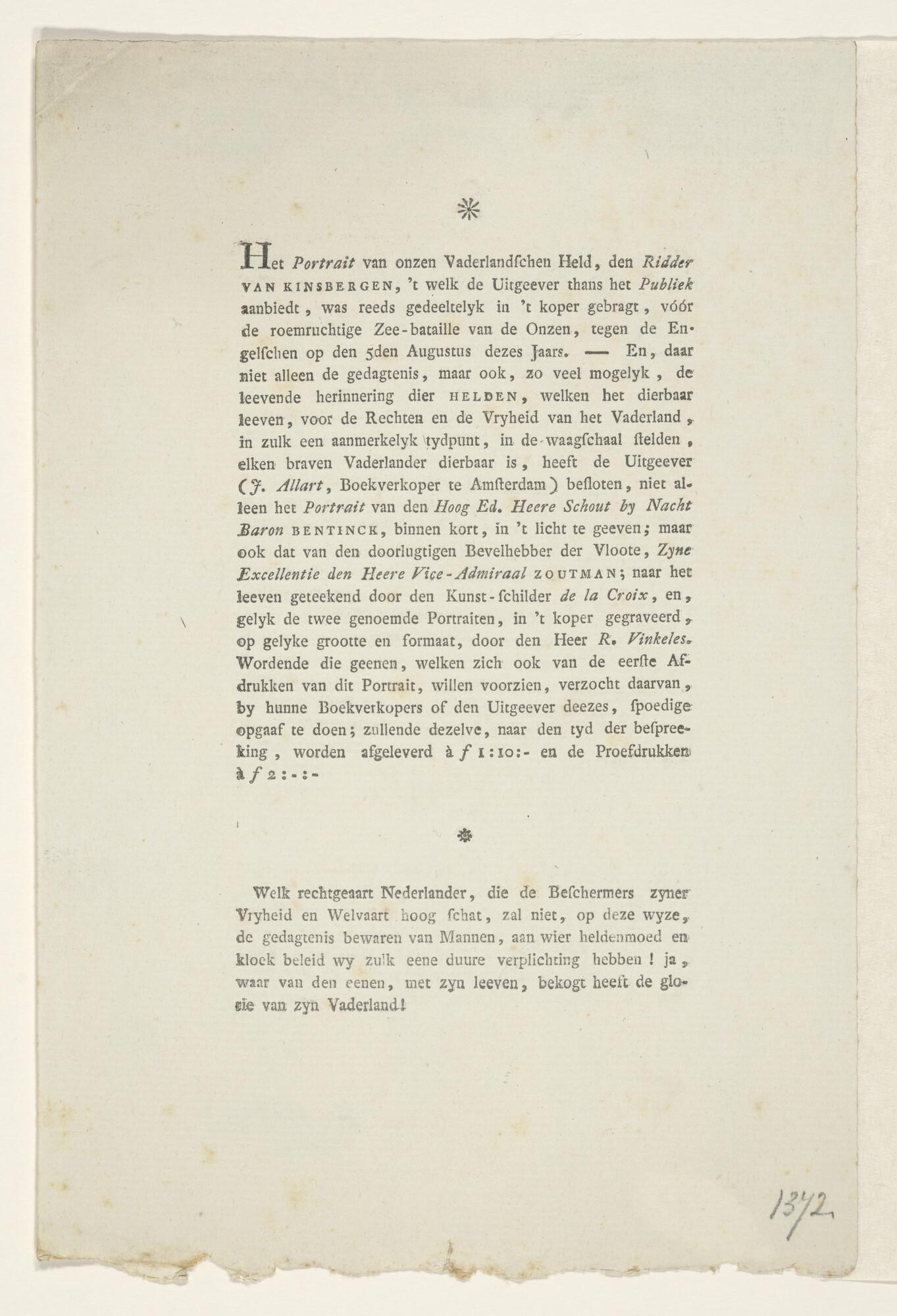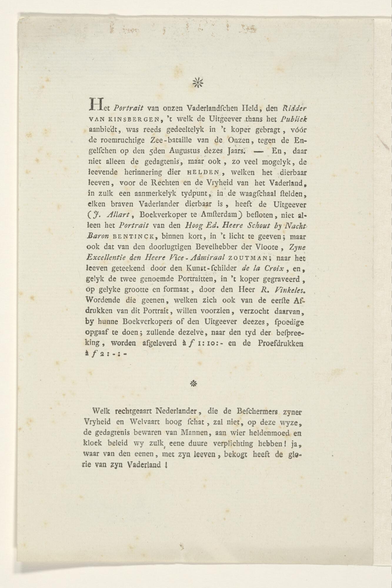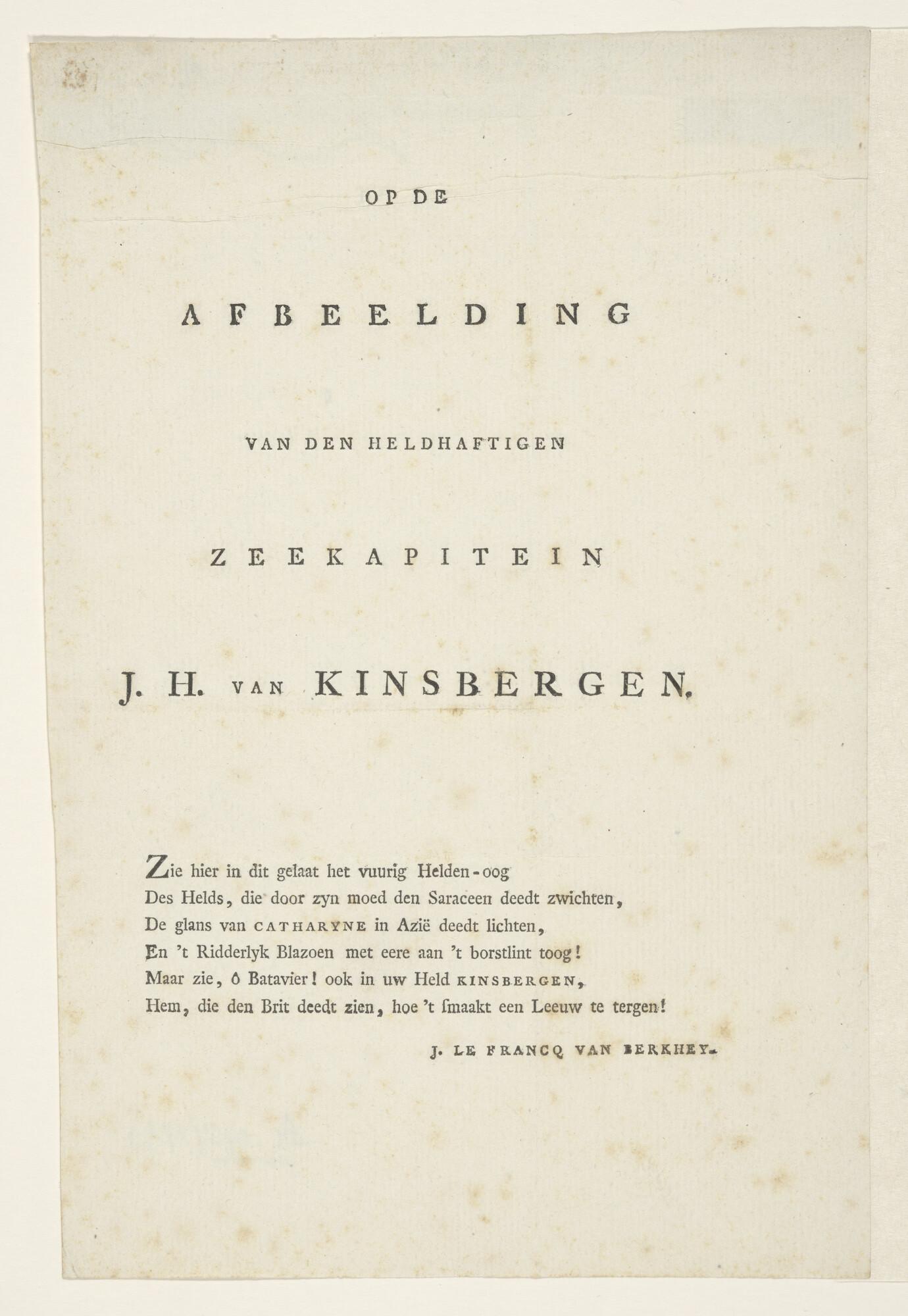 Tekst behorende bij het portret van J.H. Van Kinsbergen