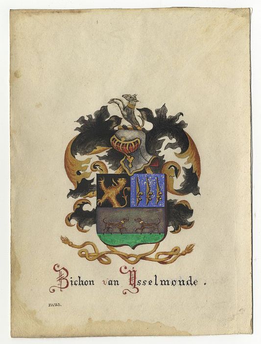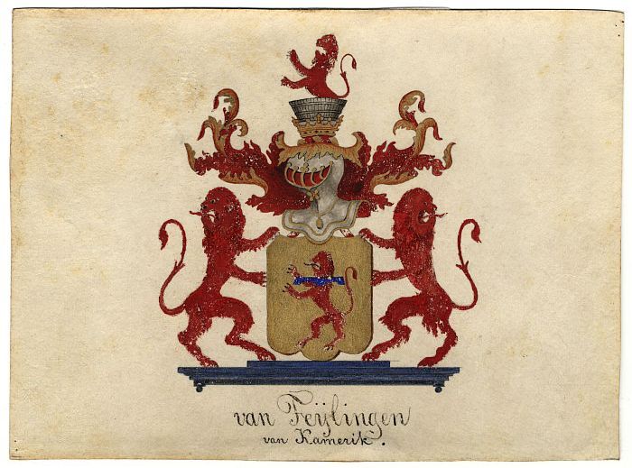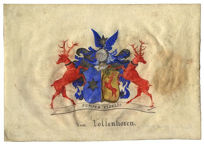Wapen geslacht Van Vollenhoven in waterverf op papier