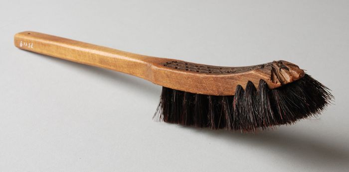 Borstel met plat handvat met "Magazijn de Kroon - Sc...