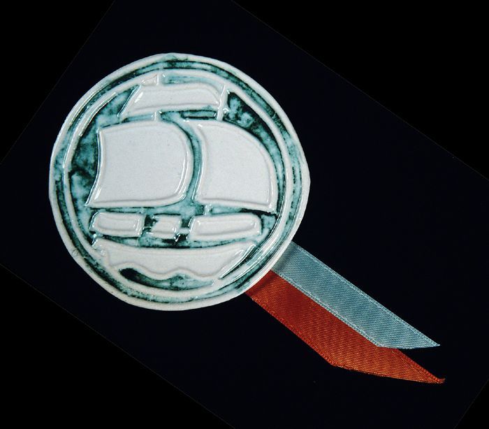 Aardewerken medaille of draagplaquette met zeilschip