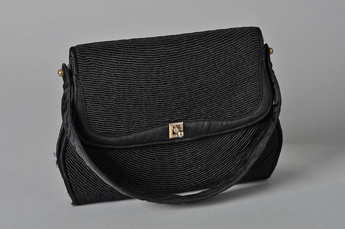 Avondtasje van zwart zijdesatijn met opgenaaid satij...