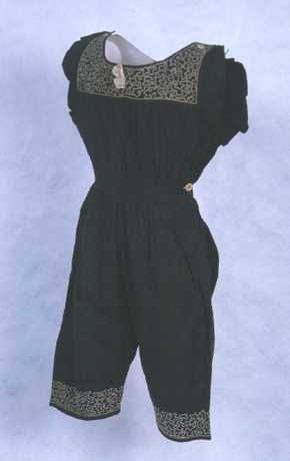 Badpak van donkerblauw tricot wol met korte pijpen e...