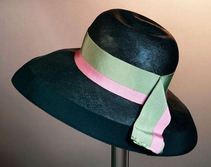 Dameshoed van naturelkleurig gladstro, opstaande ran...