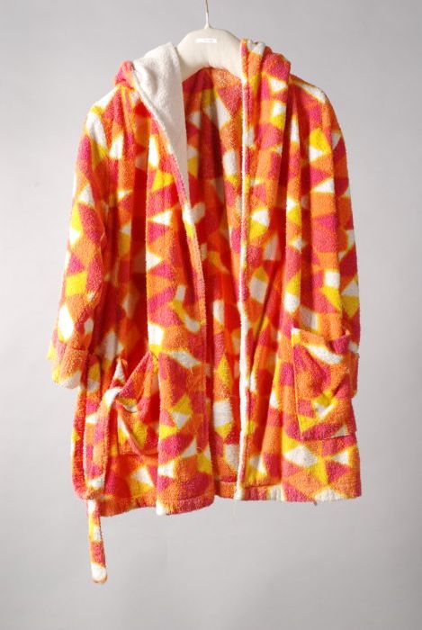 Hemd van roze tricot wol, roze satijnen lint door tu...