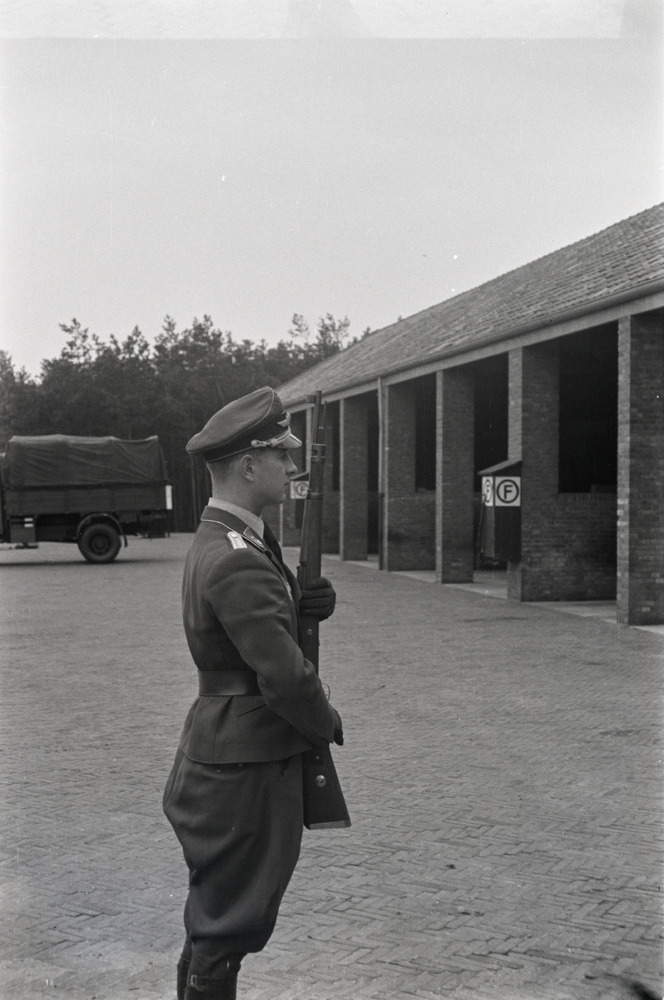 Een Luftwaffe Leutnant presenteert geweer voor een g...