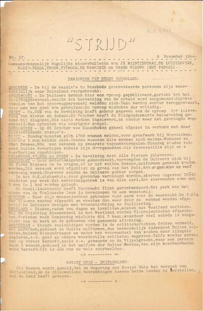 Strijd, Gemeenschappelijk dagelijks nieuwsbulletin v...