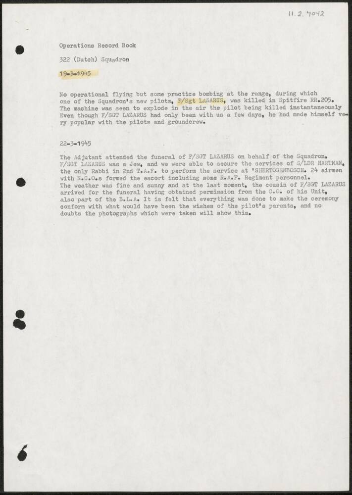 Uittreksel Operation Record Book No. 322 (Dutch) Squ...