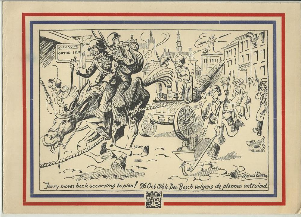 Prent , tekening met daarop de tekst : Jerry moves b...